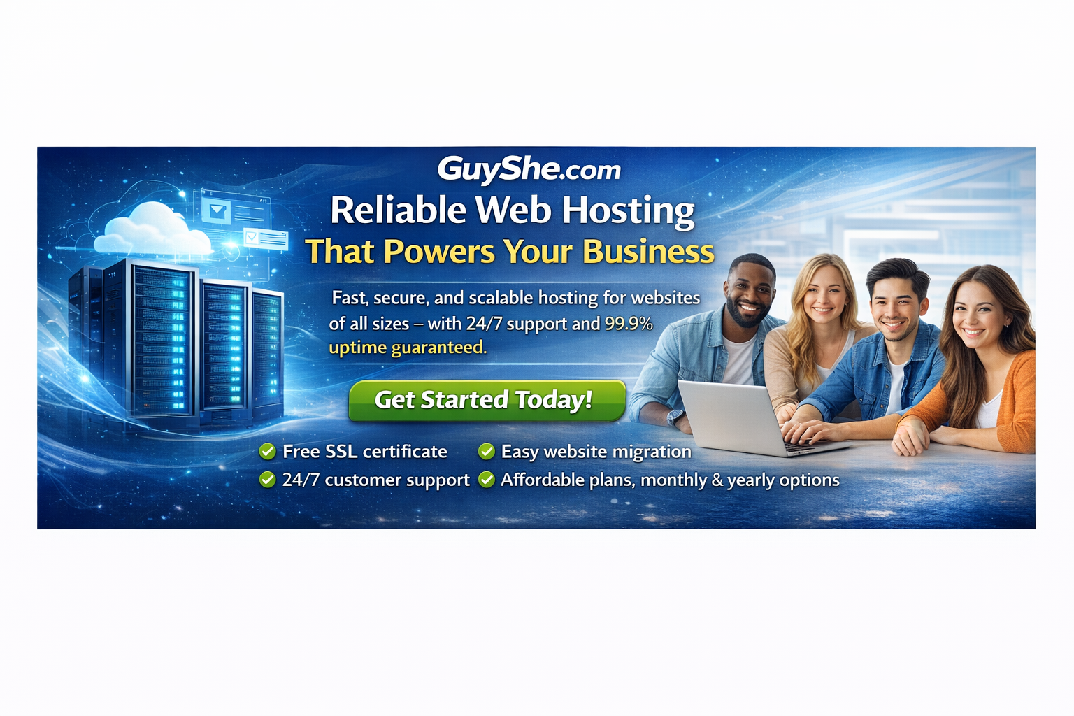 Get high-performance, secure, and SEO-optimized web hosting with GuyShe.com. Choose a 1-year, 3-year, or 5-year hosting plan at unbeatable prices—perfect for business websites, online stores, bloggers, and entrepreneurs who demand speed, reliability, and scalability.